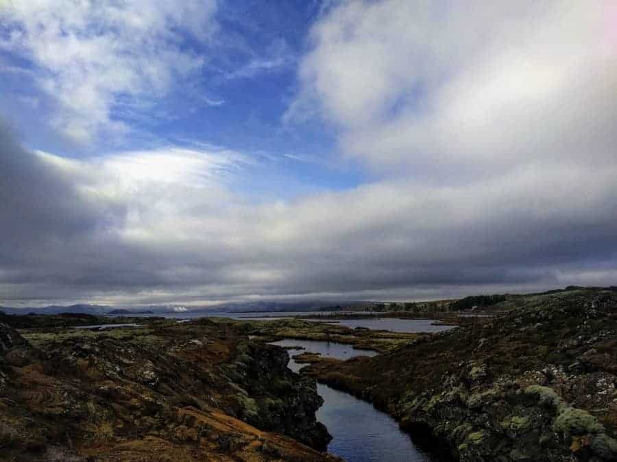 Snorkeling in the space between the North American and Eurasian tectonic plates is not to be missed. The water is fresh from a glacier and filtered through lava before it fills the fissure, so visibility is beyond 100m! It is also freezing cold, so we wore dry suits (think a warmer version of a wet suit- the water can’t get to your skin) with our long underwear and wool socks underneath to stay warm. We’ll be honest- we were SUPER apprehensive about getting in the 2 degree water…