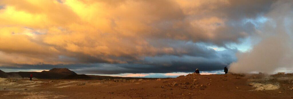 Aside from our introductory night in Vik, where else did we go and what else made an impression on us? It was all a blur of beauty and discovery. Never a dull landscapes. Jaw-dropping views and finds. Few trees, but marvelous undulating rocks, sheep, wind-whipped horses, charming red roofed churches, marshmallow fields, rainbows, waterfalls & black sand beaches. We particularly enjoyed the Mývatn area. The geothermal region (Skútustaðahreppur) is hauntingly beautiful, especially at sunset and we had been told to skip the crowded Blue Lagoon and go instead to the Mývatn Baths .