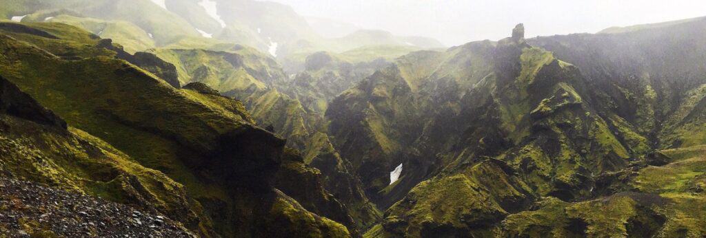 camper van rental six hours into our hike from Skógar to Þórsmörk. Soaking wet and freezing cold, we were poorly equipped for the relentless wind, rain, and hail. We could have spent our last day in Iceland relaxing at the Blue Lagoon and sleeping in a cushy Air BnB in Reykjavik. Instead, we were trekking over volcanic rock and glacial ice, unsure if we were even on the right trail.