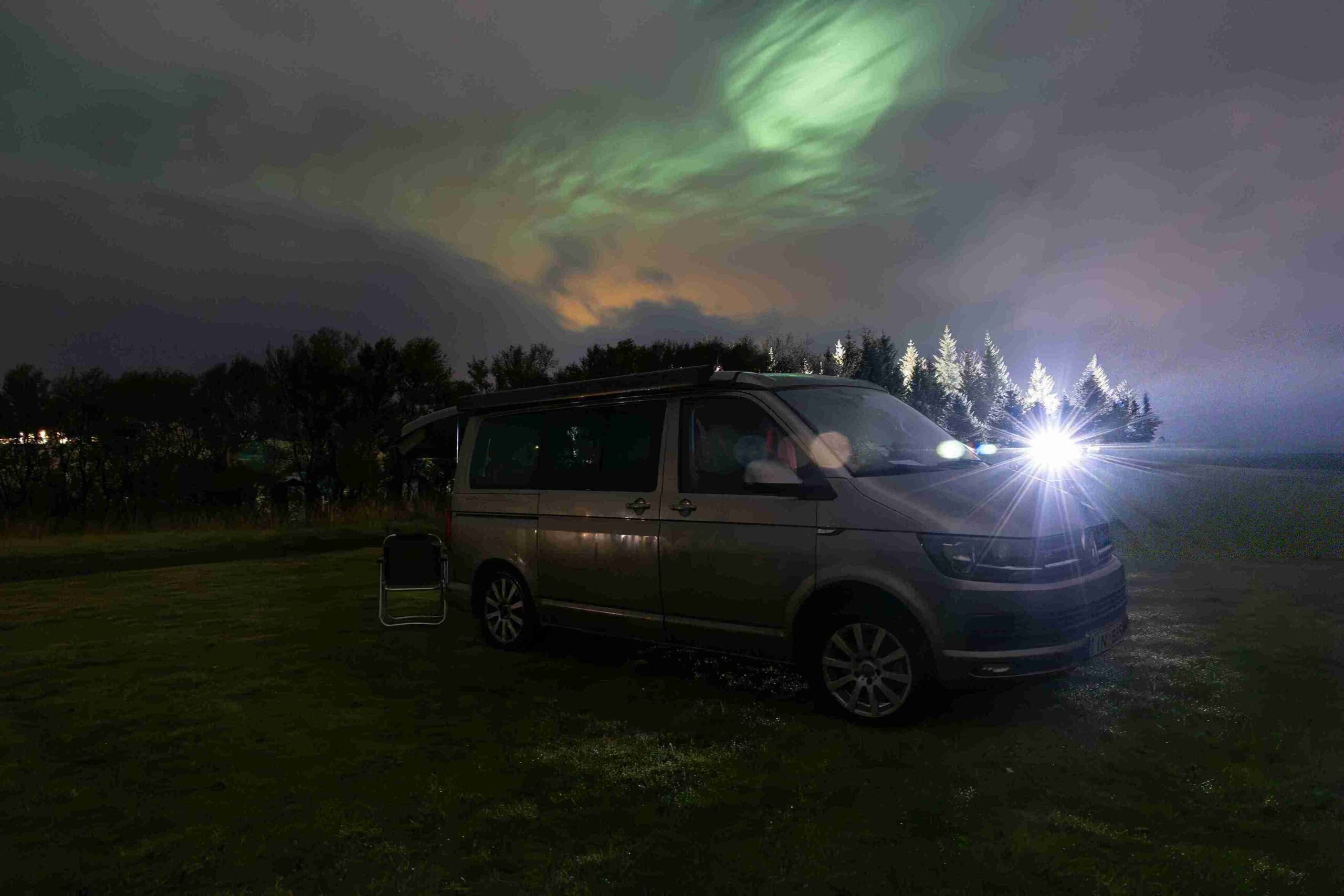 Der VW California Camper ist das neueste Mitglied in unserer Camperflotte. Er ist vollausgestattet mit allem was ihr zum Campen rund um Island braucht. Sein 2l Dieselmotor sorgt für eine gute Performance und volle Effizienz. Er hat nicht nur leichtgewichtige Campingmöbel (Tisch und Stühle) dabei, sondern auch maßgefertigte Vorhänge für alle Fenster, inklusive der Frontschutzscheibe. In robusten Seitentaschen lässt sich euer Gepäck verstauen. Mit 6 Lautsprechern. AUX und USB-Verbindung könnt ihr eure Lieblingsmusik in bester Tonqualität genießen, oder in gemütlichen Campingnächten zusammen einen Film schauen. Alle Fahrzeuge laufen mit Diesel für einen sparsamen Verbrauch. Der Camper hat Sitzplätze für 5 Personen und 2 Betten für 4 Erwachsene, die sich mit nur wenigen Handgriffen ausklappen lassen. Das Dachbett hat 2 Zwecke. Es kann im geparkten Zustand geöffnet werden und sorgt für extra Innenhöhe. Zur Schlafenszeit dann einfach den Bettrahmen herunterziehen und somit ein extra Doppelbett erhalten. Einfach fantastisch! Mit unbegrenzten Kilometern könnt ihr einen großartigen und modernen Komfort genießen und alle Orte in Island besuchen, die ihr erkunden möchtet.